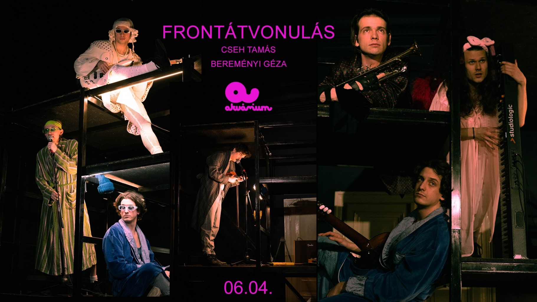 Cseh Tamás és Bereményi Géza Frontátvonulás című előadását.Ecsédi rohangál az utcán, zaklatja Budapest lakosait, ugyanis a barátját keresi, a barátját Vizit, aki ott hagyta őt egy lakásban aludva két liter kávélikőr után, mert Vizinek megvilágosodása támad és el akar innen menni, máshová, valahová, bárhová, cselekedni akar amíg képes rá, a Keleti pályaudvarra szalad, csak hogy innen nem lehet elmenni, az emberek itt ragadtak valahogy, innen nem mennek és és ide nem érkeznek vonatok.Szereposztás: