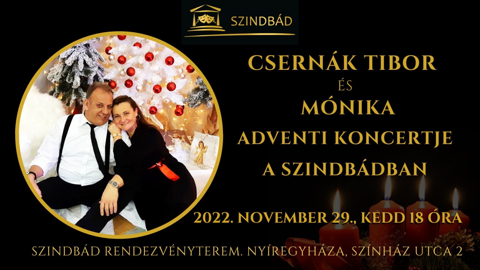 Csernák Mónika és Csernák Tibor adventi koncertje várja a Szindbádba érkezőket november 29-én.