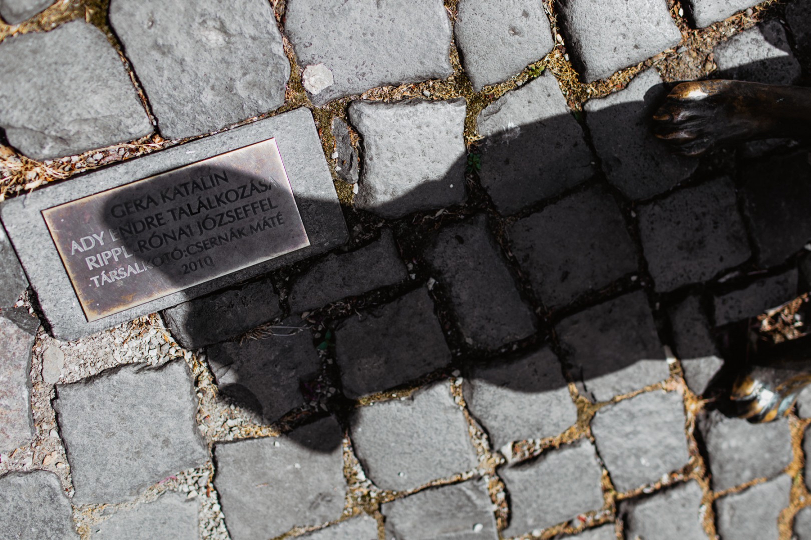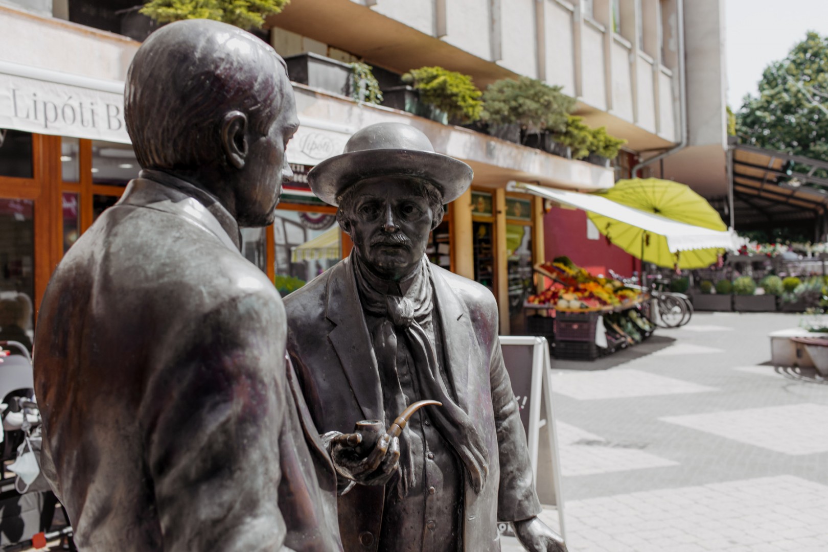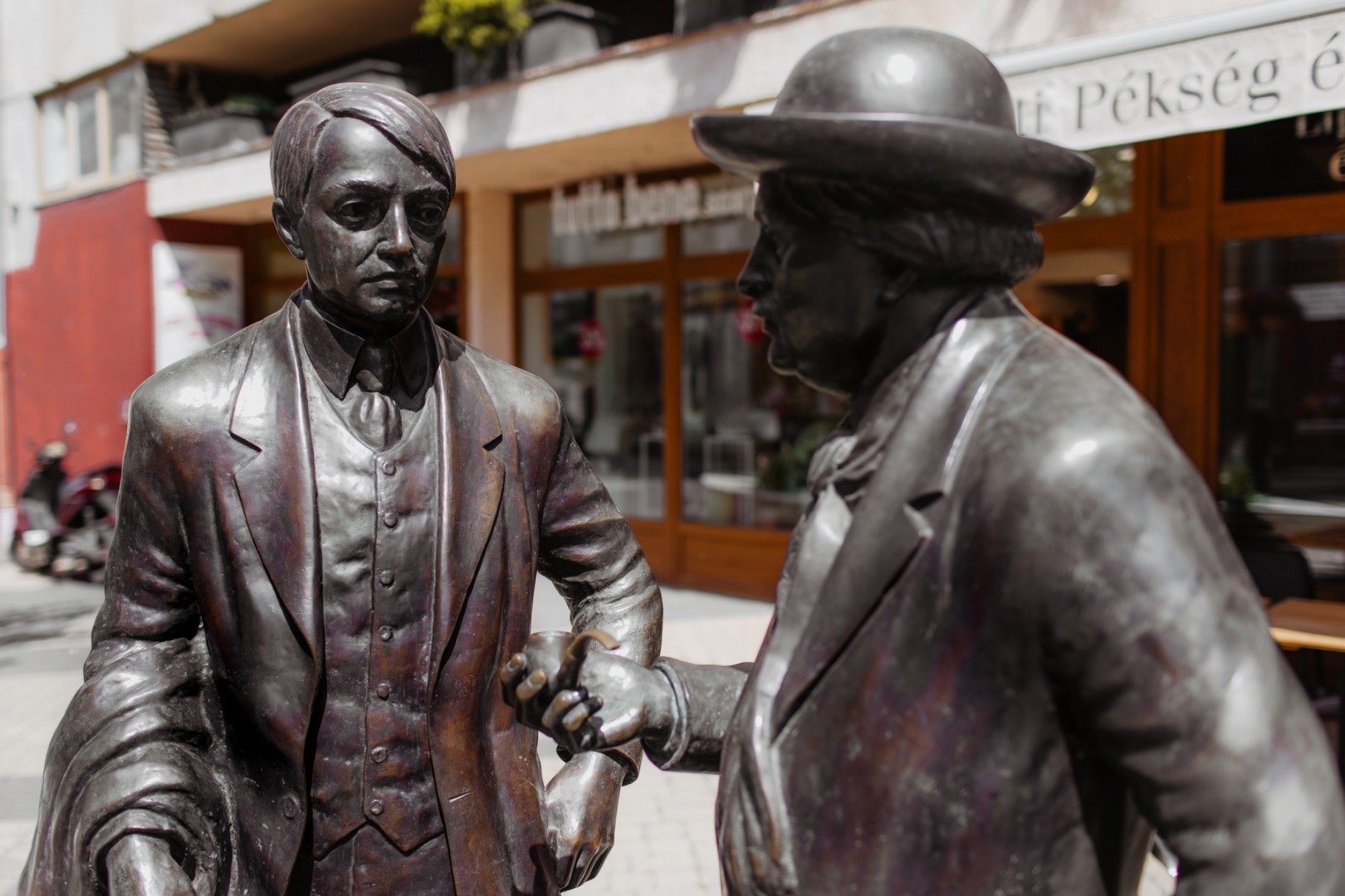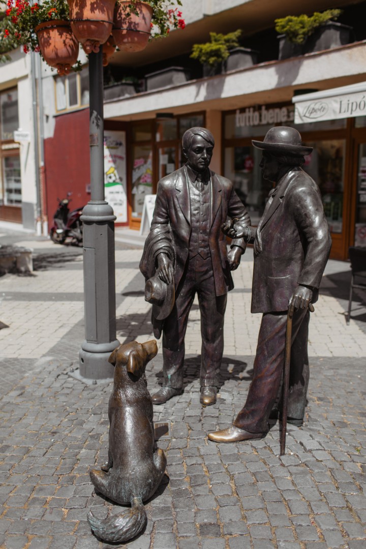 A főtértől pár lépésre található szoborcsoport a költő Ady Endre és a Happy névre hallgató kutyájával sétáló Rippl-Rónai József találkozását örökíti meg.