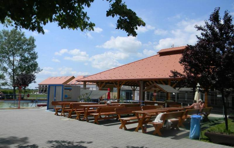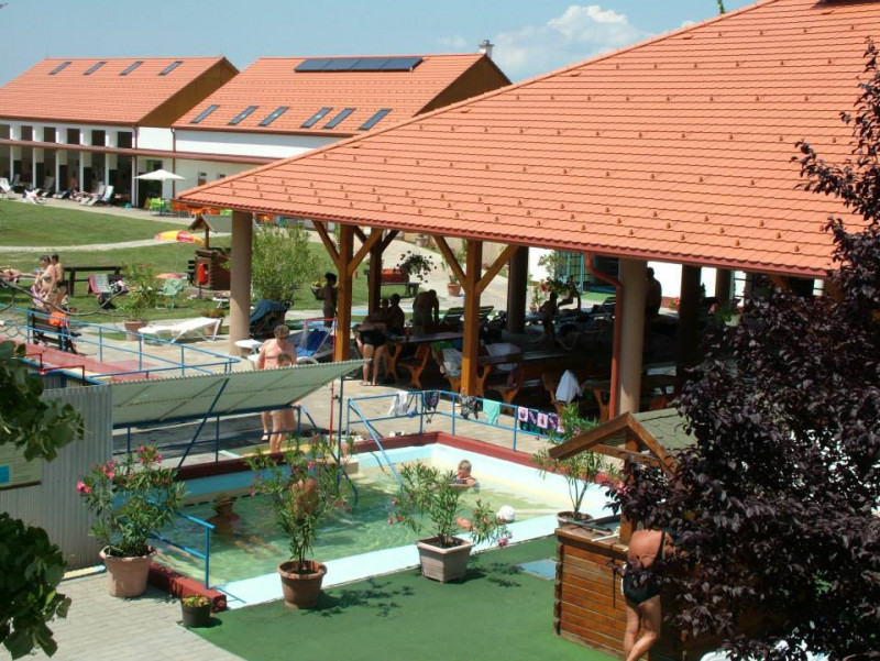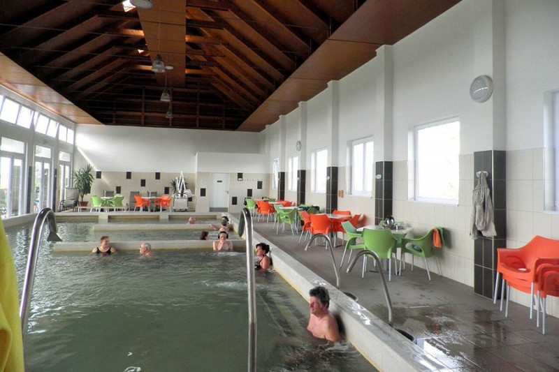 Az 593 méteres mélységből feltörő, 42 C hőmérsékletű termálvízre olaj után kutatva bukkantak. A víz igen nagy mennyiségű, 5200 mg oldott anyagot tartalmaz literenként. A kút vízhozama percenként 280-300 liter. A családias hangulatú fürdőben öt töltő-ürítő rendszerű medence várja a vendégeket. A 93 m2-es gyermek medence 35-37°C vízzel feltöltött, a 25 m2-es kis ülő medence vize 38-40°C hőmérsékletű, a nagy ülőmedence 105 m2 és 36-38°C, miként a 98 m2-es nagy fedett ülőmedence is. A 15 m2 térfogatú kis ülő medence 38-40°C vízzel telített.