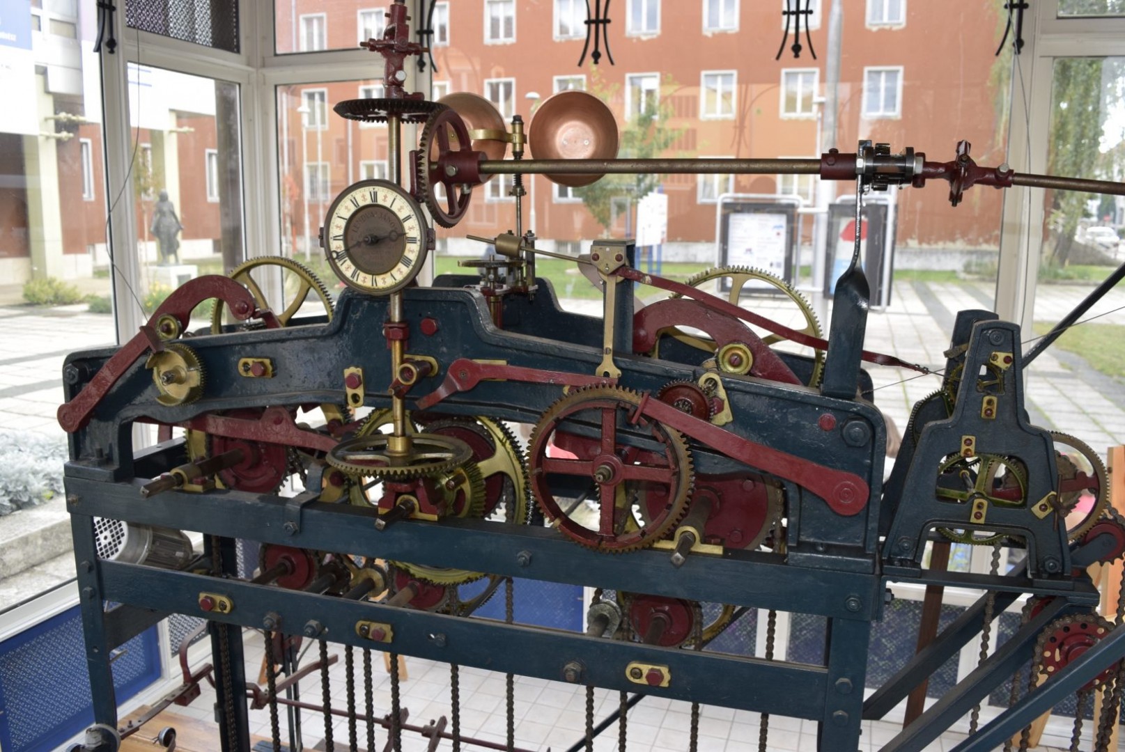 A Hevesi Sándor Színház előtti téren található óra működése a világon egyedülálló módon, egy üvegházon belül látható. Maga a gépezet Szerdahelyi Károly tervei alapján került kivitelezésre: a 200 éves óraszerkezet egy 3 méter 10 centiméter széles üvegkalitkába került, a súlyok és az ellensúlyok pedig egy három méter mélységű aknába ereszkednek a föld felszíne alá. A számlapját a város szülötte, Németh János keramikus tervezte.