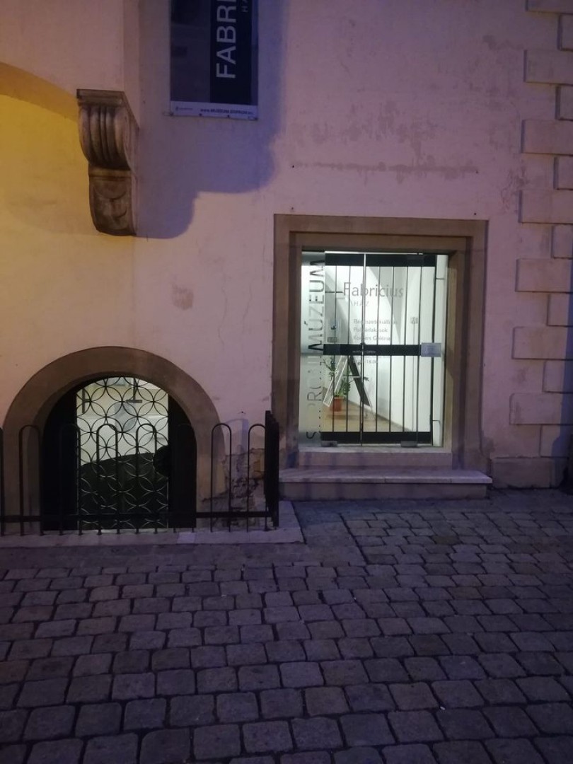 Az épület egyik érdekessége, hogy a ház alatt római fürdő maradványaira leltek a régészek. A XIV. században a telken két ház állt, a hátulsó épület már akkor kétemeletes volt. Gyönyörű a gótikus nagyterme, figyelemre méltó a XVII. században épült udvari loggia és a hátulsó traktus gótikus és barokk pincéje is. Az épület tulajdonosai mindig gazdag és tekintélyes polgárok, kereskedők voltak. Névadója - Fabricius Endre városbíró, polgármester – 1806-ban vette meg a házat. Baráti szálak fűzték Petőfi Sándorhoz, aki a laktanyából kiszökve itt öltözött át civil ruhába Liszt Ferenc koncertjére. Az épület három kiállításnak ad otthont.
