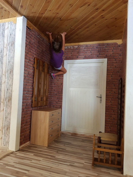 Van benne konyha, nappali, fürdő… a tűzhelyen hagyott étel is lefelé néz. Az üzemeltetők figyelmeztetnek: akiknek egyensúlyproblémáik vannak nem ajánlott, mert az egyensúly megzavarása számukra veszélyes lehet.