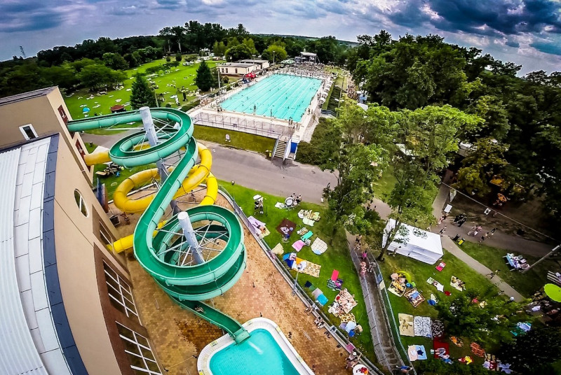 Az év minden napján nyitva tartó komplexum három kül- és négy beltéri medencével várja a fürdőzőket – egyes napokon akár éjfélig is. A csúszdázás megszállottjait kettő, az emeleti szintekről induló, majd spirálszerűen kanyargó, végül egy kültéri és egy benti medence fölött végződő óriáscsúszda kényezteti. A hangulatos, fagerendás, panorámaablakos belső térben egyebek mellett nyakzuhany, vízisün, gomba, fekvőmasszázs, megannyi buzgár és gejzír segíti a tökéletes ellazulást, melyet az úgynevezett sodrófolyosóban való szabad áramlás élménye koronáz meg.