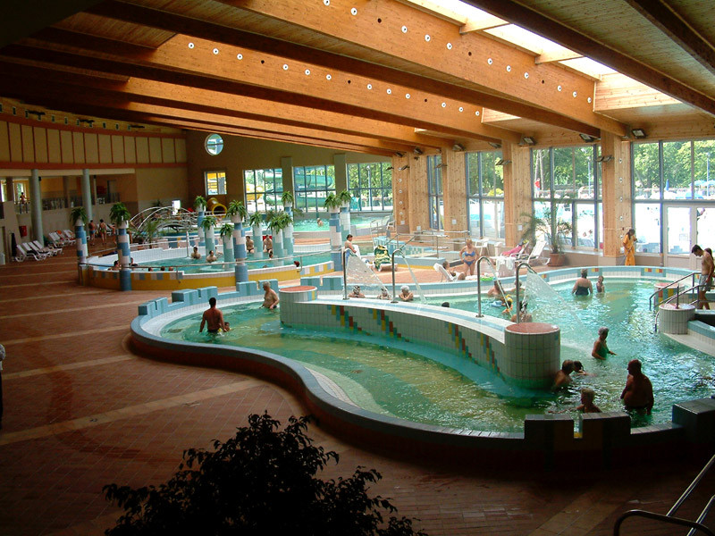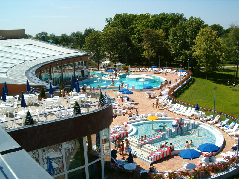Az óriási alapterületű élményfürdő az igényeknek megfelelően egyszerre teremt lehetőséget a vendégek számára a pezsgő, folyton nyüzsgő fürdőéletben való megmártózásra, s a valóban pihentető, csendes kikapcsolódásra. Ha pedig eluntuk magunkat, az élményfürdőből csak néhány lépés a hatalmas zöld parkban elterülő parkfürdő, valamint a termálvizes gyógyfürdő.