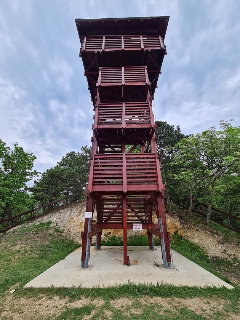 A Budapesti Erdőgazdaság Zrt. Uzsai Erdészete működési körletében tűzvörösre festett faszerkezetű kilátót adtak át az erdőjáróknak 2015. június 11-én