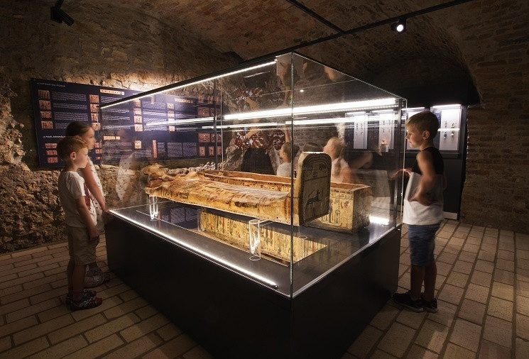 A hajdani parókia boltozott pincéjében a „Hori titkai” egyiptomi tárlat – látványos arcrekonstrukcióval és a modern audiovizuális eszközök lehetőségeivel kiegészülve, a több mint 3000 éves óegyiptomi koporsóval és múmiával a középpontban – felejthetetlen élményt nyújt.