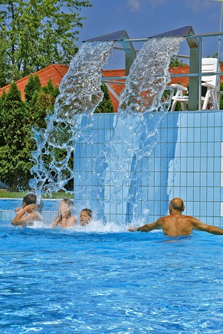 A fürdőben szabadtéren két gyógy-, egy termál, egy pancsoló egy úszó- és egy tanmedence várja fürdőzőket, továbbá egy beltéri gyógy- és egy wellness medencében is lehet ejtőzni.