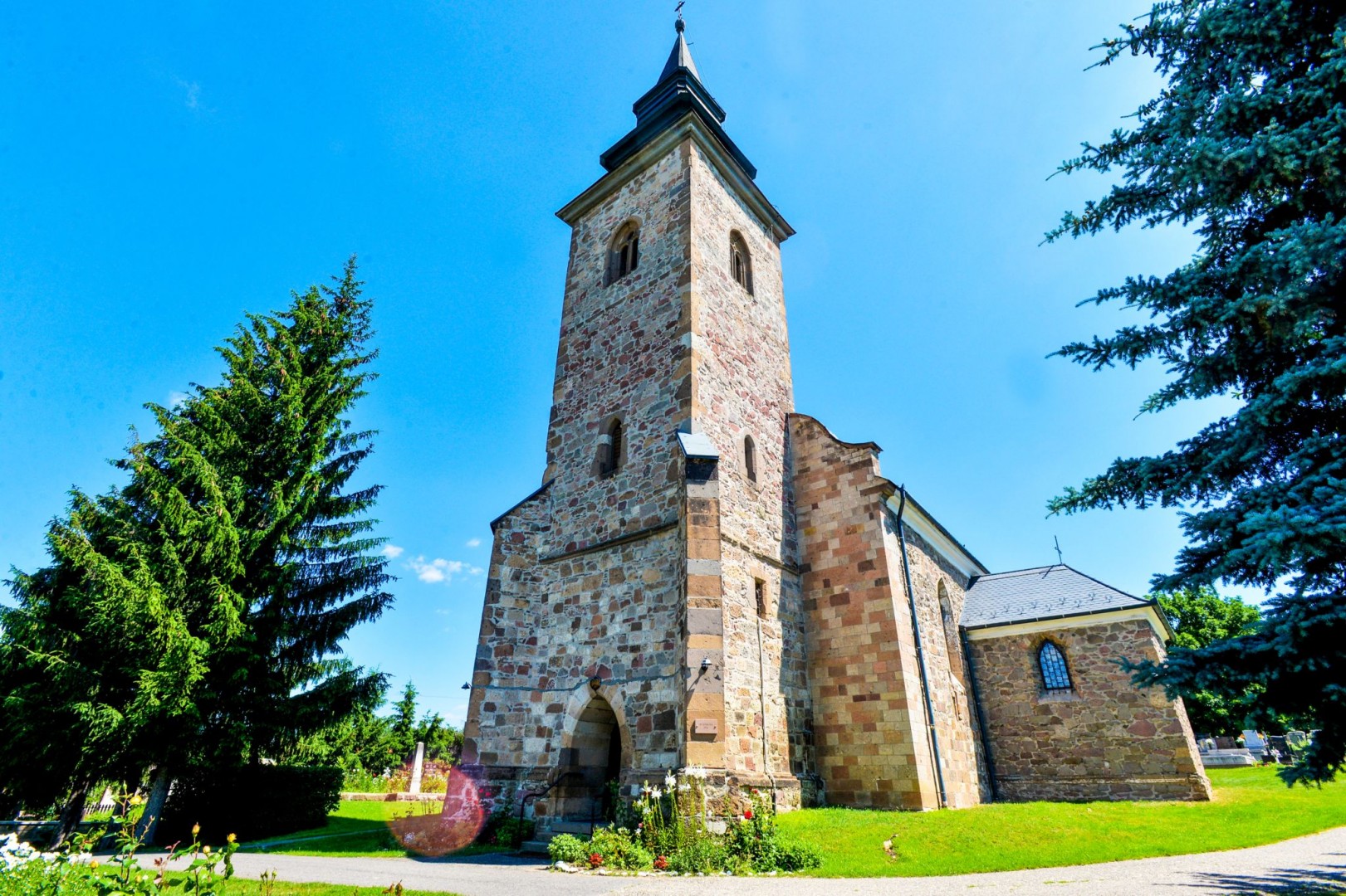 A község központjában áll a Szent Márton tiszteletére szentelt római katolikus templom, amely a helyben bányászott, faragott vöröses kőből épült. 1958-as felújításakor kerültek elő XIII. századi, román kori részletei. Gótikus stílusban a XIV. században építették át. Tornya ma is több kilométerről látszik.
