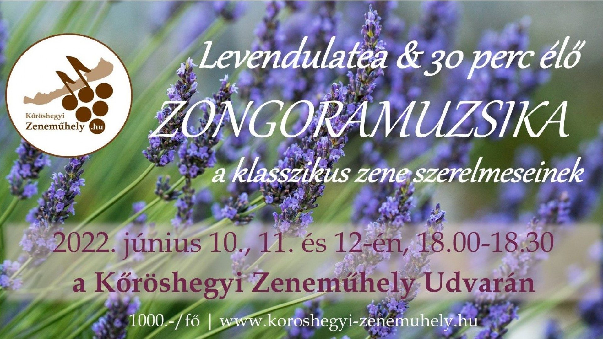 Kik hozzánk betérnek, egy félórás, élő klasszikus zongorakoncertet hallhatnak, melyet a kőröshegyi levendulákból készült, forró, s mégis frissítő házi levendulatea kóstolgatásával egybekötve varázsolunk még kellemesebbé...