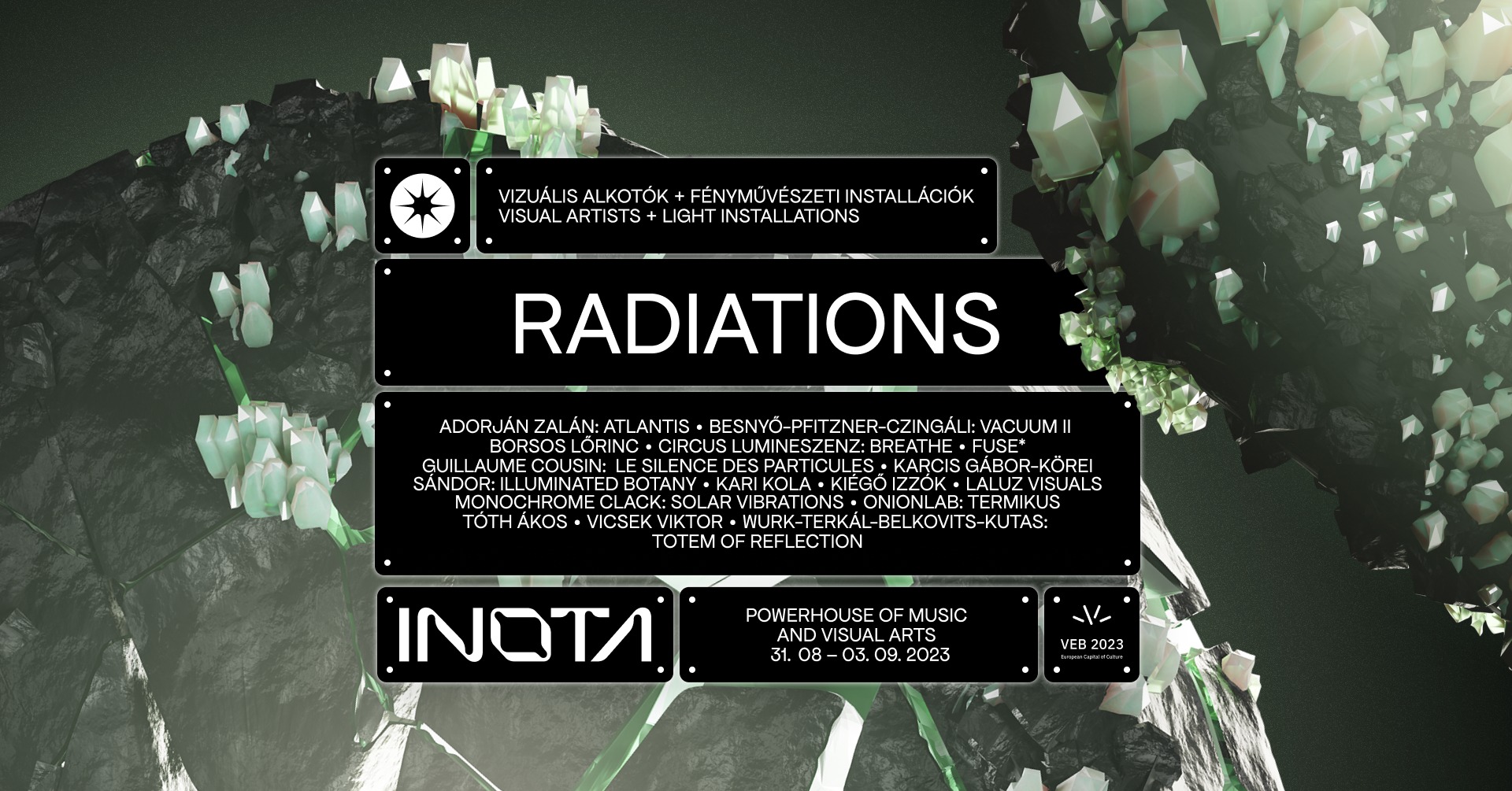 Hazai és külföldi fényművészek, 6 ország alkotói, 13 kompozíció és térspecifikus installáció: a kortárs elektronikus zenészek hosszú sorát felvonultató első INOTA Fesztivál nem csak a füleken keresztül, de az emberi test legtöbbet befogadó érzékszervén át is feltüzeli majd az idegpályákat. Látványos fényművészet ekkora méretű ipari komplexum területén és ilyen léptékben még nem jelent meg Magyarországon.