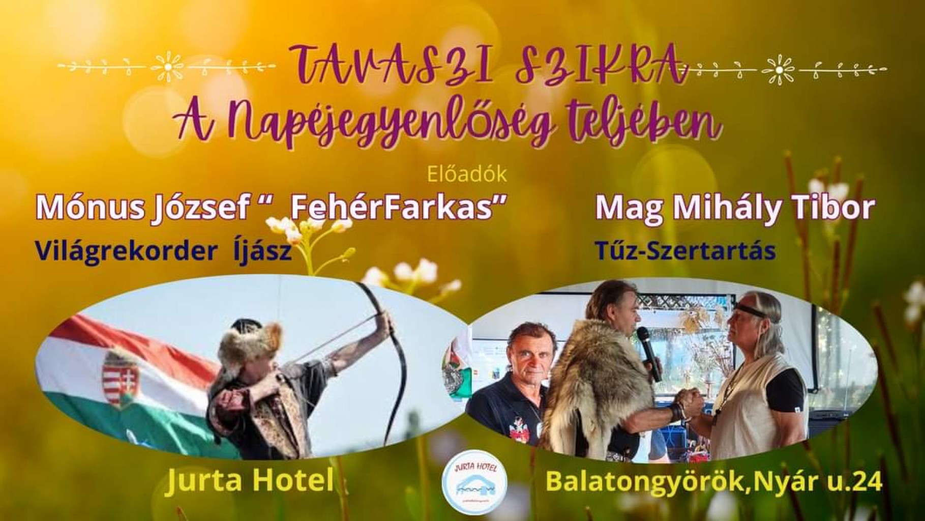 Vendégünk Mónus József” Fehér Farkas” világrekorder íjász, színes bemutatóval egybekötött előadást tart, a balatongyöröki Jurta Hotel, Boldogasszony Teraszán.Előadás témája: Harcolni a Magyar zászló becsületéért!A magyarságról, a Magyar zászló és a